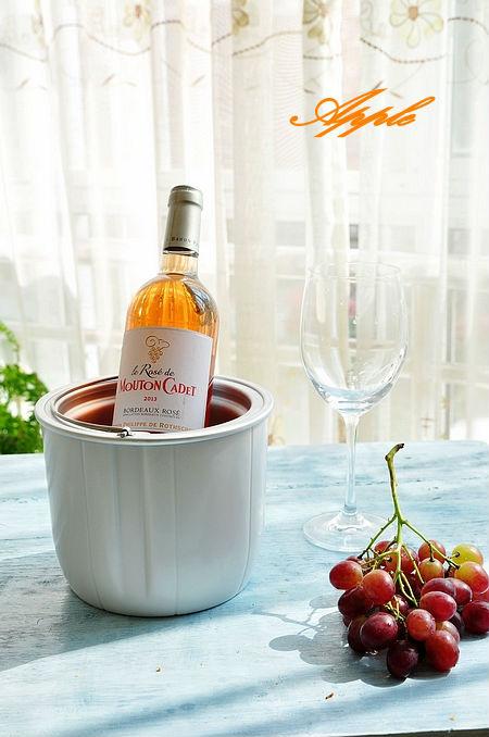 現在,讓我們一共來了解一下,這款來自波爾多法定產區,由法國菲利普羅思柴爾德男爵公生產灌裝的木桐嘉棣桃紅葡萄酒。它由 65%梅洛(Merlot),15%赤霞珠(Cabernet Sauvignon),20%品麗珠(CabernetFranc)的三個品種組成,入喉細品略澀,有濃郁的紅漿果,覆盆子和紅櫻桃的果香,并伴有絲絲花香,最佳飲用溫度是8-12度。 這個季節,我的室溫是28度,所以需要一個冰桶來調節,以達到最佳飲用溫度。接下來,我們就可以開始開酒,醒酒,品酒了。