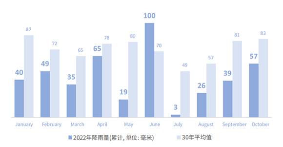 圖:2022年降雨量 來源:METEO FRANCE Direction Interrégionale Sud Ouest de Bordeaux · 葡萄園的韌性 · 有記錄以來最早的采收季之一 · 產(chǎn)量再次受限 · 締造絕佳年份的有利條件