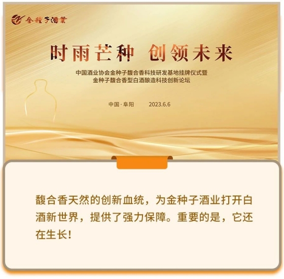 這并不是表面文章,也絕非中酒協一家認可。事實上,自華潤戰投金種子酒業后,中國食品工業協會、中國酒類流通協會等行業機構,以及江南大學、中國發酵工業研究院、安徽大學等十余科研機構也提供了頂級智力支持。 隨著金種子馥合香科技研發基地的掛牌,金種子酒業面向行業的承諾,正在通過“品類占位”和“科技創新”兌現。 知酒君長期觀察了金種子酒業近數年的發展,至今脈絡已經清晰,在現場見證基地掛牌后,我們深刻地相信:只有不斷地創新與改革,才能穿越周期,和時代相呼應。 舉旗“馥合香”,金種子非常堅定,持續的生長,也在成為打開新發展局面的核心砝碼。 這顆“金種子”,在科創中生長 科技創新如何驅動金種子馥合香的釀造發展,為消費者關心的馥合香品質帶來提升呢?匯集行業專家,金種子酒業以兩項最新科研成果、一個科技研發基地掛牌、一場釀造科技創新論壇說清了核心優勢。 而中國酒業協會金種子馥合香型科技研發基地的掛牌落地,顯然是本次活動最振奮人心的大事。