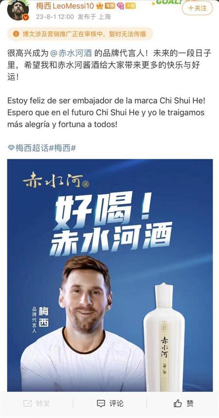 日前,賬號認證為“阿根廷足球巨星梅西”的微博宣布,梅西成為赤水河酒品牌代言人。隨后,赤水河酒官方微博也轉發了梅西的這條微博,并稱“赤水河酒有幸攜手@梅西LeoMessi10!邀您共享醬香美酒!” 此消息一出迅速 ...