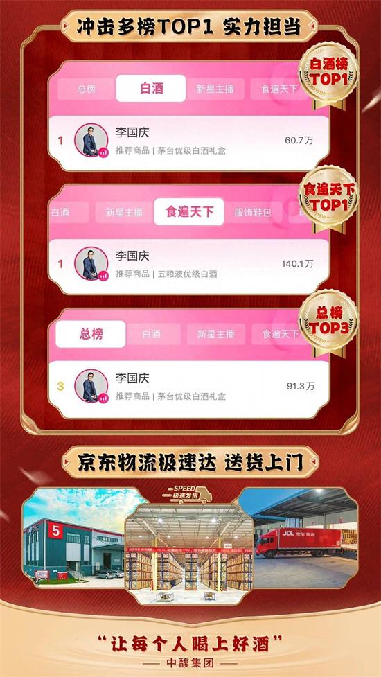 昨日,知名企業家/社會名人李國慶到訪中馥集團并參觀中馥集團華東倉儲中心,對于中馥集團給予極高評價。李國慶作為國內首代電商創始人,亦是中馥董事長創業導師,李國慶此次參訪對于中馥集團給予諸多指導,同時在中馥倉儲中心進行直播帶貨,GMV突破千萬。李國慶自2021年開始進入酒水直播帶貨賽道后,成績斐然,今年9月再次啟動酒水直播,首播中馥專場即創千萬佳績。 隨著中秋、國慶等團圓佳節臨近,消費者用酒需求也即將爆發。為滿足消費者用酒需求,實踐高端好酒還酒于民的努力,為每一位客戶打造品質生活,讓每個人都喝上好酒。中馥集團全體上下通力合作,打造系列倉庫直播,場場精彩、場場大賣。每場直播商品也是經層層篩選、嚴格評選的“名品”,既有優質精品文化酒,也有市場火爆的高端醬酒,打造多元化產品矩陣,全方位的滿足客戶旺季自用、宴請、禮贈的需求,并全面提升優惠機制、物流配送、客戶服務,感恩回饋一直以來支持我們的客戶朋友們。中馥集團始終秉承著“顧客為先”的首要企業價值觀,不斷為客戶提供高水準商品和服務。 |