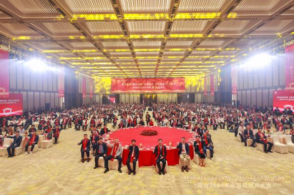 閆凱境表示,國臺要錨定“中國新名酒”建設目標,通過數智生產力的打造,形成新質生產力,力爭給行業提供一個傳統白酒走新型工業化的參考樣本。重點圍繞智能釀造、多渠道布局、貼近消費者和提升品牌影響力四個方面展開工作。2024年也有明確的市場建設目標,即拓展并精細化管理各級經銷商網絡,產品覆蓋到全國不同層級市場;構建“千家超級終端、8萬家包量終端、2萬家形象終端”三級終端體系;強化電商布局,線上線下融合。通過多元化的銷售渠道網絡,覆蓋更廣泛的市場和消費者群體。 事實上,在“廠商同心、共創共享、共管共治”的發展理念指引下,共商共建同奮進早已寫入了國臺的基因深處,也成為國臺穿越行業發展周期、穩步向“中國新名酒”邁進的強大動力源,本屆經銷商大會更充分彰顯了這一點。 一方面,國臺在本屆經銷商大會前后,將連續三天召開千人大會。1月9日國臺舉行“千商大會”,此后的兩天,國臺還將協同龍程酒業、粵強集團分別組織召開國臺國標10“千終端大會”和年度答謝“千消費者大會”。從經銷商到終端再到消費者,可以說國臺廠商同發力,借助打造合作終端的節日、消費者的節日,以高人氣、高熱度,拉開了2024年行動的帷幕,開啟了廠商開門紅。