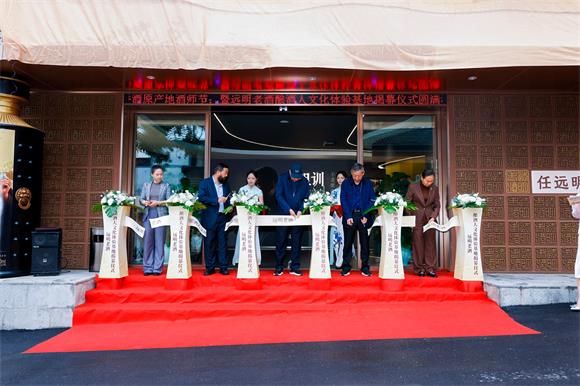 遵義市酒業協會會長、專家委員會主任委員呂云懷,遵義市酒業協會常務副會長、秘書長呂玉華,遵義市酒業協會副會長、專家委員會秘書長、國家白酒評委、醬酒名師蔡天虹,中國酒業協會首席品酒師、高級工程師、中國酒都·醬香酒匠彭茵,遠明酒業集團董事長任遠明一同為遠明老酒釀酒人文化體驗基地剪彩。