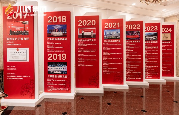 2021年,成為國內首家獲得CMA資格認證的酒企并榮獲四川省“質量穩定標桿企業”稱號,繼續踐行“百城百品百億工程”加速品牌擴張; 2022年,打造“中國最大白酒定制基地”,并發布“換道搶跑,五環同行”發展戰略,以戰略引領,不斷厚積薄發,品牌影響力位列“四川企業100強”第43位; 2023年,發展提速,屢獲殊榮,例如啟動永樂龍井醬酒基地項目、發布《質量白皮書》、啟動“中國醬香夢工廠”項目建設等,同時并榮獲了“四川省行業示范企業”“新時代十年瀘州酒業特別貢獻領軍型企業”“瀘州市國企改革三年行動優秀集體”等榮譽,以及“四川企業100強”排名上升兩位。 到2024年,川酒集團已經位列“四川企業100強”第29位,較2023年排名上升12名,并以快速、高效的增長,奠定了四川白酒“六朵金花+川酒集團”產業發展的新格局。