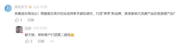 作為酒業老兵,劉濤深耕酒業一線多年,曾擔任孔府家酒CEO、舍得營銷公司副總兼夜郎古酒副總等多家知名酒企要職,積累了大量的人脈資源、市場運作經驗和品牌管理經驗。比如任職孔府家酒期間,他一手操盤打造的子約系列產品,不僅成為魯酒板塊的爆款產品,也曾一度創下小米有品熱銷飲食類日銷冠軍的成績。 在此背景下,劉濤親自出鏡講述茅泉商業模式,并邀請廣大從業者提出寶貴意見,自然順理成章的引發市場的熱議。畢竟,這不再是單向的進行品牌輸出,而是變成了一個集思廣益的共創過程,讓茅泉的品牌故事、項目規劃得以在網絡空間迅速蔓延,在提升品牌認知度的同時,也增強了消費者的參與感。 可以預見,伴隨“英雄帖”視頻熱度的持續走高,不僅將會進一步提升茅泉的品牌影響力,也會吸引更多潛在消費者和合作伙伴關注茅泉品牌。 跨界眾創,拓展“第二曲線” 當然,一條“短視頻”之所以能夠快速破圈,除了個人IP賦能外,也與視頻中傳遞出的價值主張有著密不可分的關系。 在視頻中,劉濤提到,茅泉來自醬酒核心產區茅臺鎮,依托“茅臺鎮”這一地理標志,茅泉品牌天然具備市場關注度。另外,他拋出的“拒絕躺平,聚合眾創”的核心主張,更是精準觸達了從業者的變革渴望——在消費分級與競爭白熱化的背景下,酒企如何通過資源整合破局市場。 品質是品牌的核心競爭力,茅泉酒業深知這一點。在白酒這樣一個講究文化底蘊的行業里,茅泉是一個文化“根深”的品牌。據了解,茅泉前身是原榮和燒坊(王茅)技術負責人在茅臺鎮創辦的茅泉老號。在上個世紀,該酒坊生產的“茅泉酒”曾名噪一時。