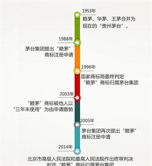 賴(lài)茅商標(biāo)歸屬時(shí)間軸 在1988年之前,白酒還處在計(jì)劃經(jīng)濟(jì)時(shí)期,所有白酒產(chǎn)品均通過(guò)商業(yè)部門(mén)統(tǒng)購(gòu)調(diào)撥的嚴(yán)格指令性計(jì)劃,由各級(jí)國(guó)有糖酒公司來(lái)執(zhí)行全國(guó)范圍內(nèi)的流通銷(xiāo)售,因此市場(chǎng)上并未見(jiàn)到賴(lài)茅酒出現(xiàn)。 隨著1988年白酒市場(chǎng)放開(kāi),各類(lèi)賴(lài)茅開(kāi)始逐步涌現(xiàn)。以“賴(lài)永初”、“賴(lài)貴山”、“賴(lài)世家”、“祖師爺”等作為商標(biāo)的賴(lài)茅酒大約300來(lái)種,生產(chǎn)廠(chǎng)家不一而足(引自晉育鋒《賴(lài)茅亂象的前世今生》),不僅生產(chǎn)廠(chǎng)家混亂,酒水質(zhì)量參差不齊,更讓酒評(píng)君哭笑不得的是,之前朋友送來(lái)的賴(lài)茅酒中竟然有濃香型。因此,可以肯定,酒友們?cè)?014年之前喝到的賴(lài)茅酒,雖然不能說(shuō)是“假賴(lài)茅”(因?yàn)樯虡?biāo)沒(méi)有確定歸屬,不能視為侵權(quán)),但和茅臺(tái)集團(tuán)真的沒(méi)有直接關(guān)系。 在1988年-2014年長(zhǎng)達(dá)26年的時(shí)間里,各種各樣賴(lài)茅酒以各種形式、各種渠道流向全國(guó)市場(chǎng),這雖然擾亂了市場(chǎng),但在某種意義上對(duì)醬香型白酒的推廣和消費(fèi)者教育起到了巨大的作用。賴(lài)茅酒甚至一度作為一個(gè)“品類(lèi)”而非“品牌”深入民心。