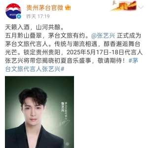 5月7日上午,先是一條“今天10點,茅臺空降首個代言人”消息引發廣泛關注,隨后“茅臺 張藝興”等詞條爬上高位熱搜,全網紛紛猜測消息的真實性,直到當天傍晚5點左右貴州茅臺官微正式官宣張藝興成為茅臺文旅代言人。 ...